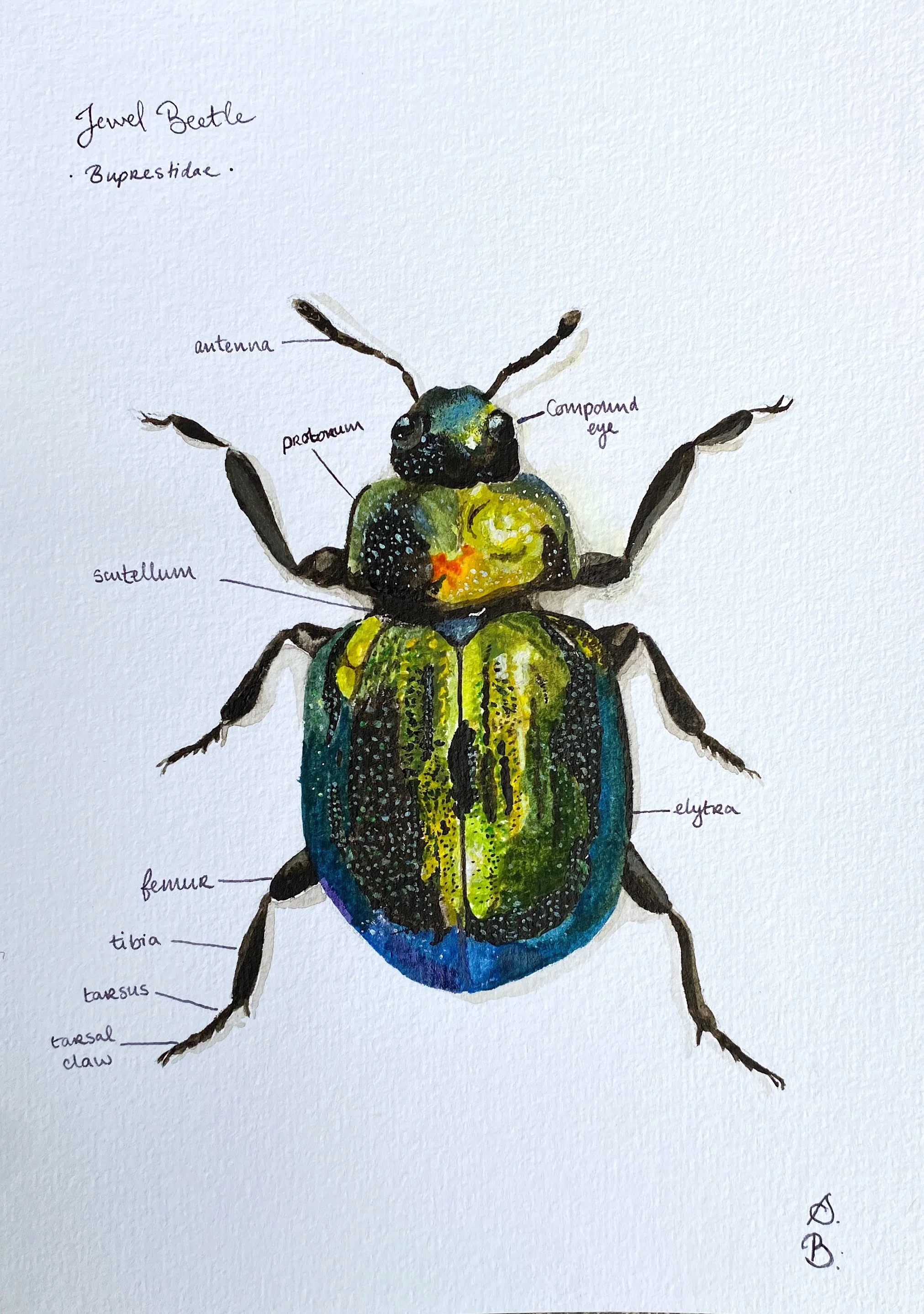 Photo reference "Macro Photography of Jewel Beetle on Green Leaf" by Egor Kamalev is licensed under Pexels License"