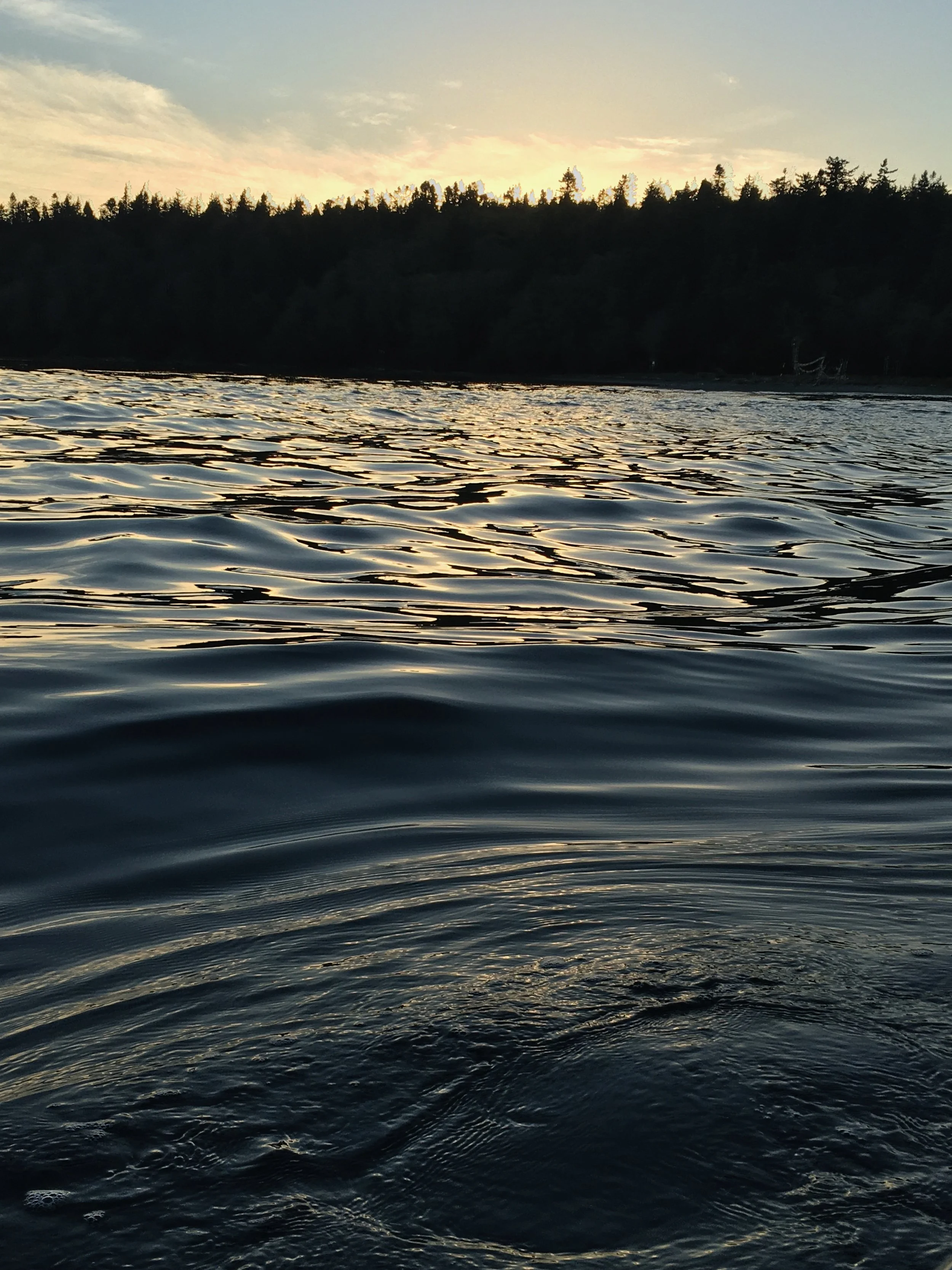 The constantly varied nature of water’s surface in response to earth, air and gravity is a source of fascination. A variety of wave forms describe the unseen: larger waves respond to the changing depth of the land below often crashing on shores. Or smaller capillary waves are created as the wind riffles across its surface or in response to an object like a paddle, raindrop, or even an insect. Large periodic waves have an S shape that repeats over regular time and spatial intervals. These waves transfer energy. Varied waves called capillary are small surface-level waves with a rounded crest and v-shaped trough. These have a short wavelength that is influenced by the water’s surface tension rather than gravity.